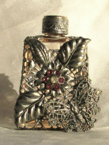 Vintage Art Deco Czech pink perfume bottle - filigree butterfly