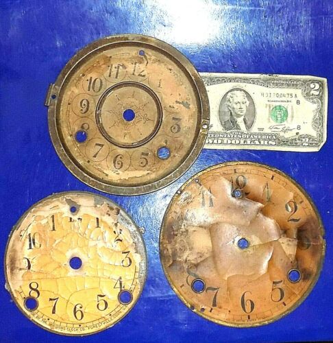 Lot Very Old Metal Clock Dials w/Worn Paper Faces for Parts