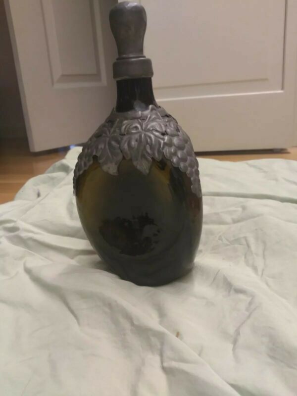 Title (ebay affiliate link): Antique Pinch Green Glass wine/whiskey Decanter with Tourneau pewter applied