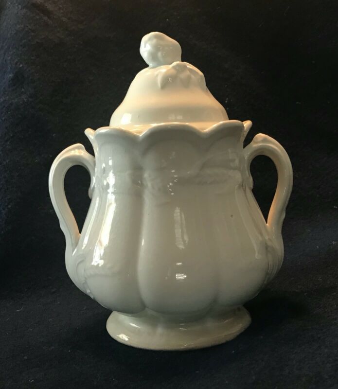 Antique white English ironstone sugar bowl
