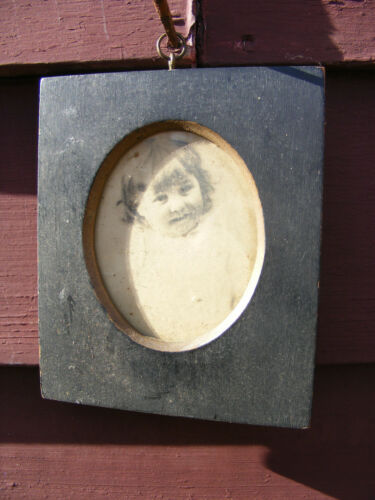 VINTAGE WOOD PICTURE FRAME OVAL Cut Out with Young Girl Photo