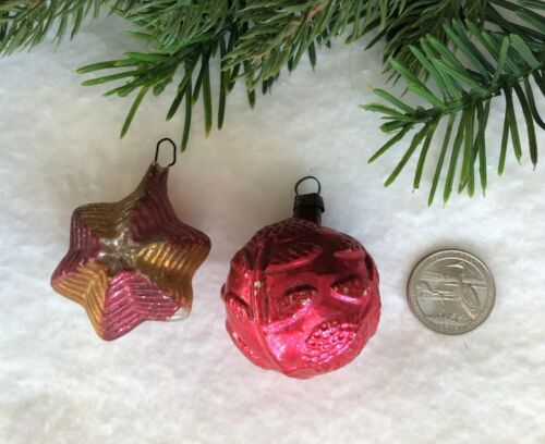 Two Antique German Christmas Ornaments Feather Tree Star Ball Shape