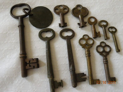 LOT 10 ANTIQUE SKELETON FURNITURE and CLOCK KEYS