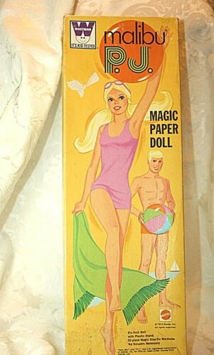 Title (ebay affiliate link): Malibu P. J. paper doll set by Whitman Mattel Magic stay on wardrobe 1972