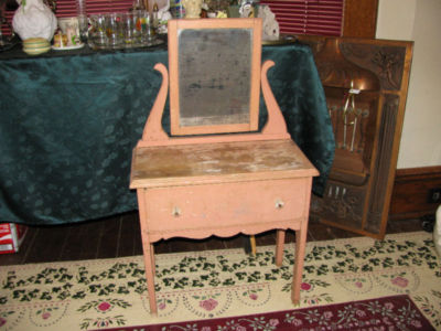 Childs Antique Vanity With Tilt Mirror And Drawer