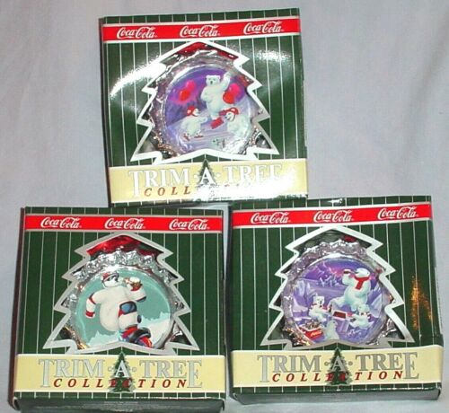 3 COCA-COLA TRIM-A-TREE BOTTLE CAP ORNAMENTS 1998 POLAR BEARS