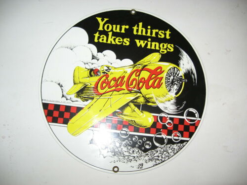 Title (ebay affiliate link): Ande Rooney Reproduction Coke Sign - Your Thirst Takes Wing w/ Gee Bee Airplane