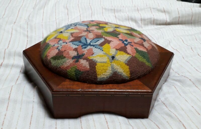 VINTAGE MAHOGANY FOOTSTOOL with TAPESTRY SEAT