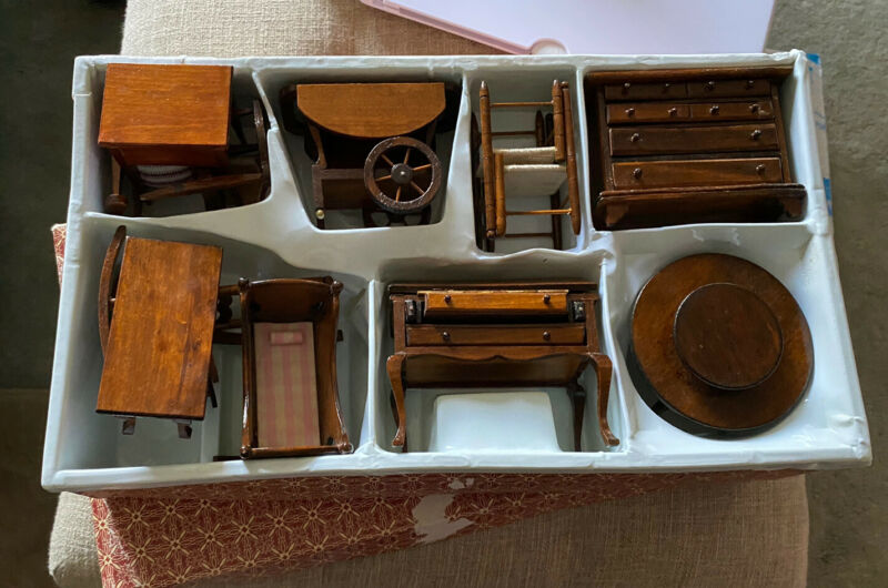 Vtg Wood Doll Furniture 12 Pcs Mib Antique