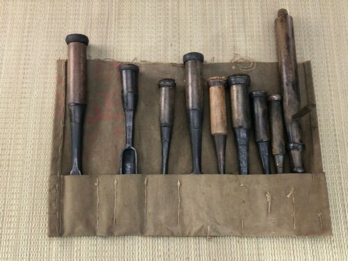 Japanese Vintage Carpenter Tool Chisel Nomi Woodworking DIY 9-piece set/ l17