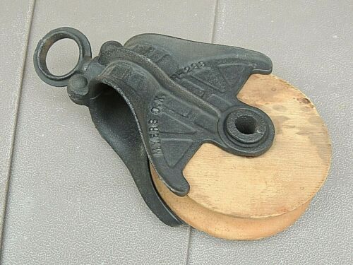 Title (ebay affiliate link): Antique Cast Iron Myers Pulley Model H-298 w/ Wooden Wheel, Primitive