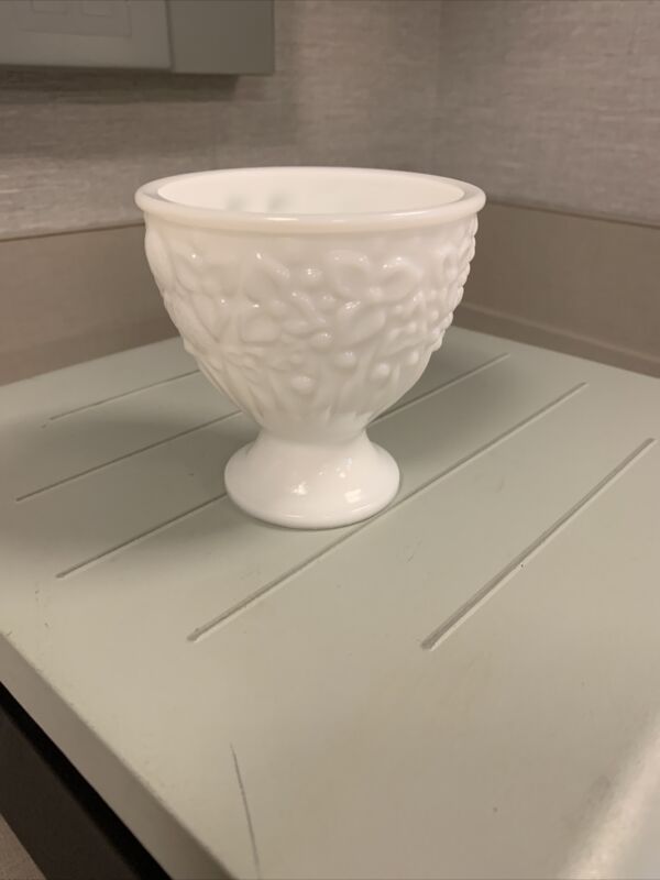 Title (ebay affiliate link): VINTAGE AVON MILK GLASS SMALL COMPOTE / CHALICE, FLORAL PATTERN