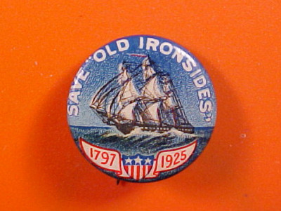 1797 OLD IRONSIDES NAVAL SHIP Pin ADVERTISING Button`25