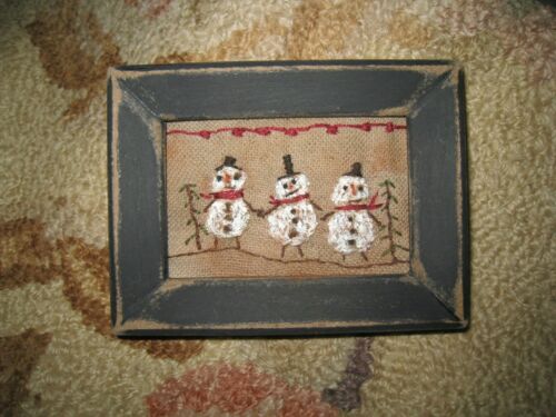 Primitive tiny Sampler~The Dancing Snowmen ~Early Quilt ~ Folk Art