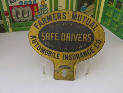 VINTAGE FARMERS MUTUAL SAFE DRIVERS MADISON WI. METAL License Plate Topper