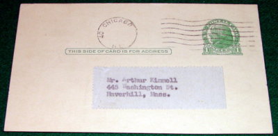 Title (ebay affiliate link): One Cent Postal Card Haverhill, Mass. to Chicago Ill.