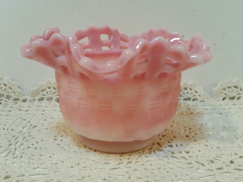 FENTON ROSALENE LATTICE BOWL 5 1/4" BY 3" PINK AND WHITE