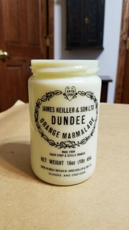 Vintage James Keiller & Sons Dundee Croydon Orange Marmalade Milk Glass Jar