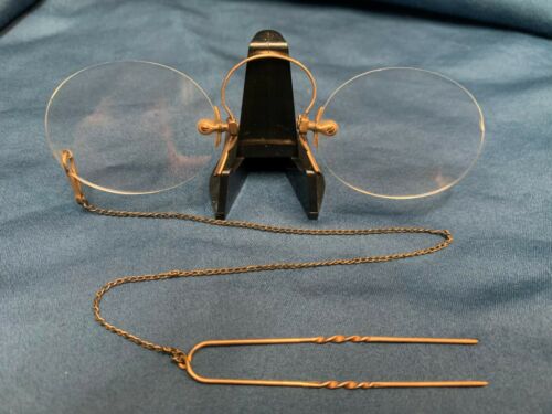 Antique Pince Nez Glasses with Hair Pin & Chain