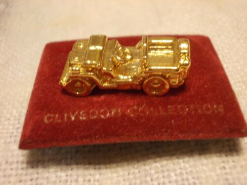 Title (ebay affiliate link): VINTAGE MINIATURE CLIVEDONS COLLECTION GOLD METAL "JEEP" TIE TACK/HAT LABEL PIN