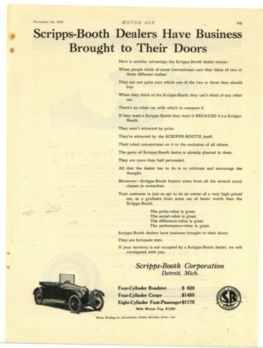 Title (ebay affiliate link): 1916/17 Scripps Booth Motor Cars Ad: SB Dealers have Hundreds of Asst. Salesman