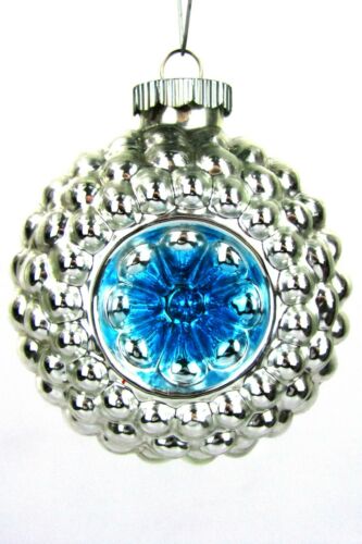 Radko Shiny Brite Glass Jumbo Bumpy Double Indent Christmas Ornament Silver Blue