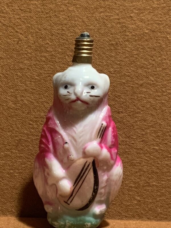Title (ebay affiliate link): Vintage Rare Christmas Milk Glass Cat Fiddle Light Bulb Colored Pink Green