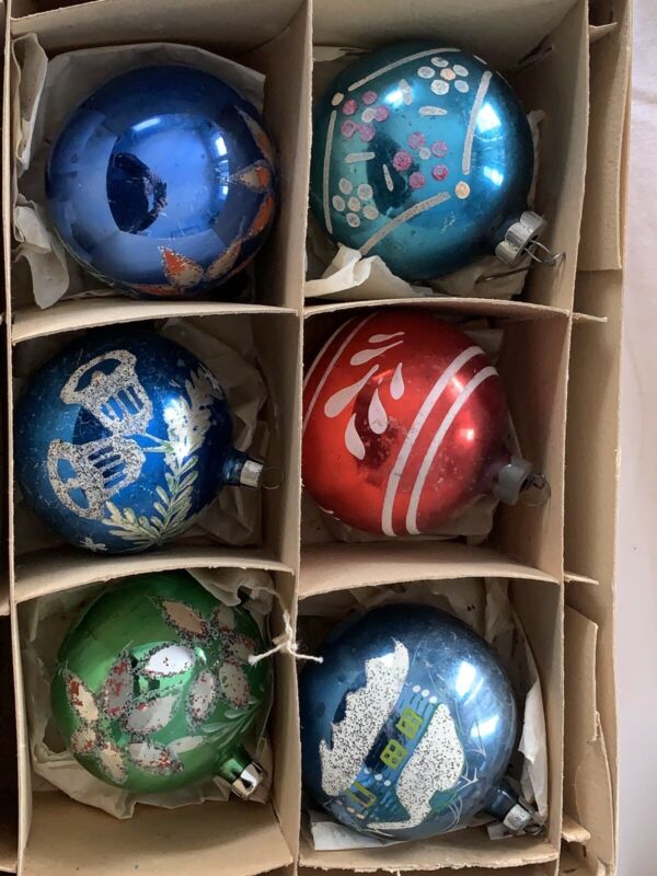 Title (ebay affiliate link): 6 Poland Vintage Glass Hand Painted Christmas Tree Ornaments Mica Stenciled