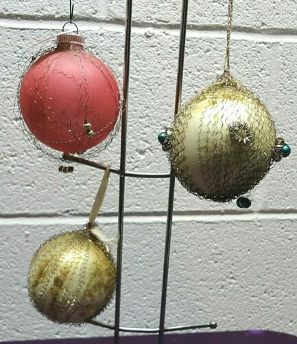 Title (ebay affiliate link): 3 Antique Christmas Ornaments Wire Wrapped; 3"; pink,white,silver,turquois beads