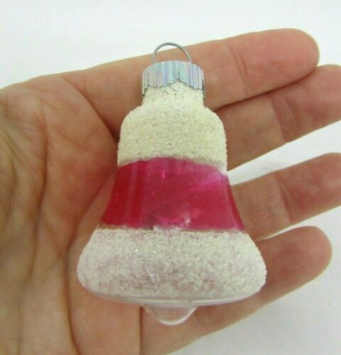 Title (ebay affiliate link): Vtg SHINY BRITE Unsilvered WWII Bell Christmas Ornament 2" Pink, White