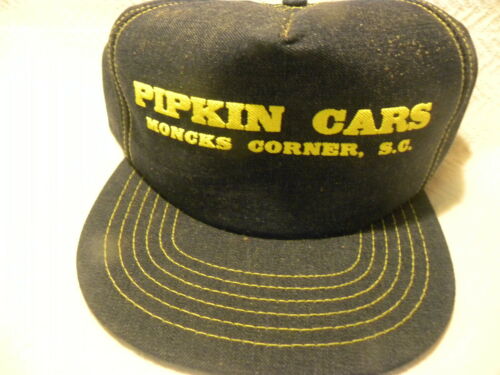 Vintage Snapback Trucker HAT DENIM BLUE W/GOLD NOS DIXIE USA 1970''S SC CAR LOT