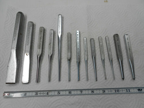 Vintage Mix Lot Set 13 =CRAFTSMAN= USA WF Cold Chisel Punch Tool Art Metal Shop