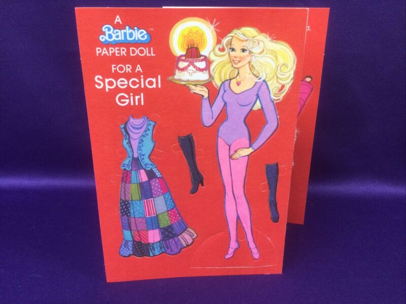 Title (ebay affiliate link): BARBIE PAPER DOLL HAPPY BIRTHDAY CARD WITH THREE PAGES OF CUT OUTS. 1979.