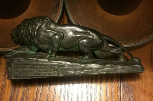 Title (ebay affiliate link): Antique Bronze Lion Paperweight, Rehberger Mfg. Co. Chicago Advertisement Plaque