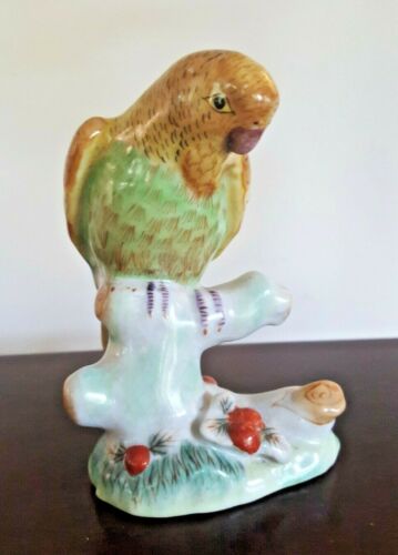 Vintage WL 1895 WONG LEE Porcelain Parrot Bird Figurine standing on a Perch