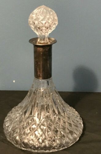 Vintage Cut Crystal Wine Decanter with Silver Rim and Stopper