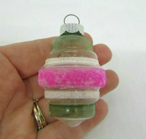 Vtg SHINY BRITE Unsilvered WWII Atomic Christmas Ornament 2" Aqua, Pink, White