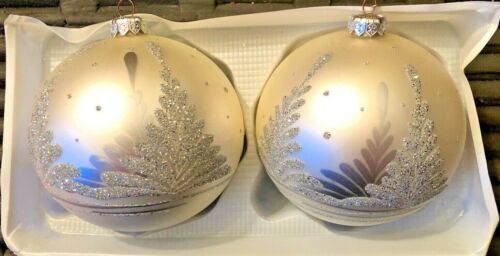 VINTAGE CHRISTMAS TREE GLASS WHITE SILVER ORNAMENTS EXTRA LARGE BALLS POLAND