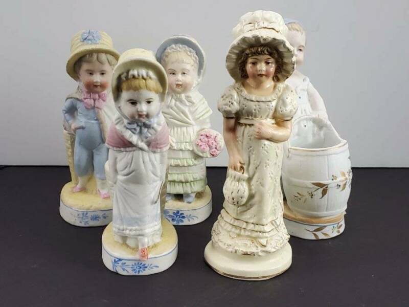 (5) ASSORTED ANTIQUE BISQUE PORCELAIN VICTORIAN MATCH TOOTHPICK HOLDERS
