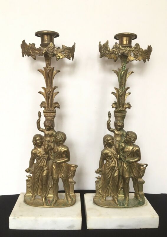 Title (ebay affiliate link): Pair Antique Brass Marble Girandoles Candlestick Prism Holders Figural 15.5"