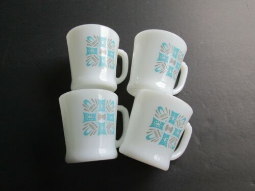 Set of 4 Royal China Blue Heaven Milk Glass Coffee Mugs.