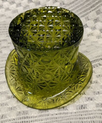 Title (ebay affiliate link): Vintage Fenton Olive Green Glass Daisy & Button 3 1/4" Top Hat Candy Dish