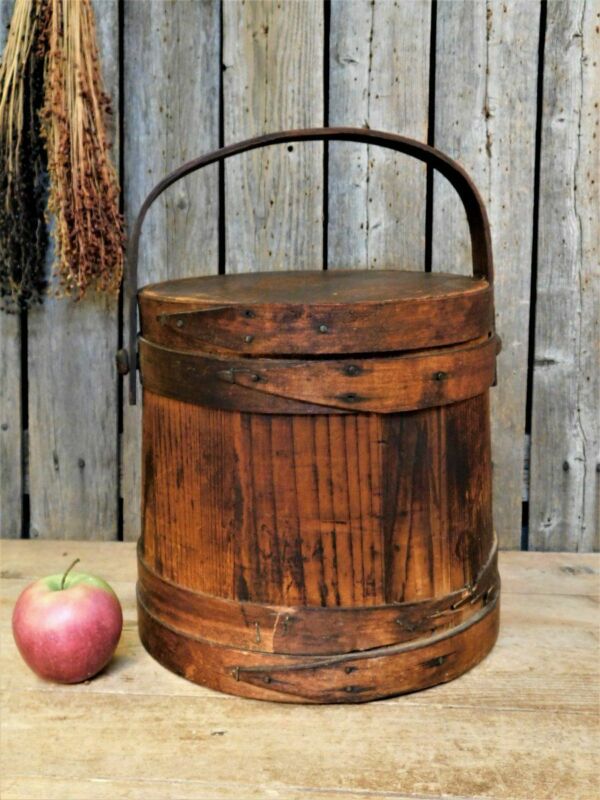Title (ebay affiliate link): Early Antique Primitive Wood Firkin Sugar Bucket AAFA