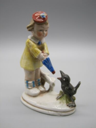Antique German Porcelain Girl With Umbrella and Crow 20841 6"