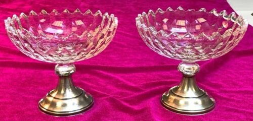 Pair Antique cut crystal Tazza Footed compote Dishes~Sterling Silver Bases