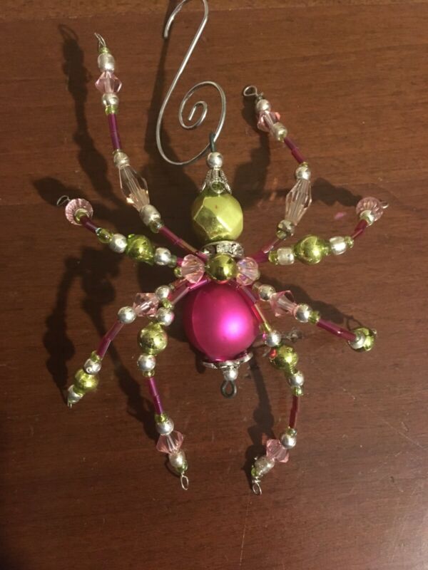 Title (ebay affiliate link): CHRISTMAS SPIDER Mercury Glass Beaded PINK/CHARTREUSE JEWELED CHRISTMAS Ornament