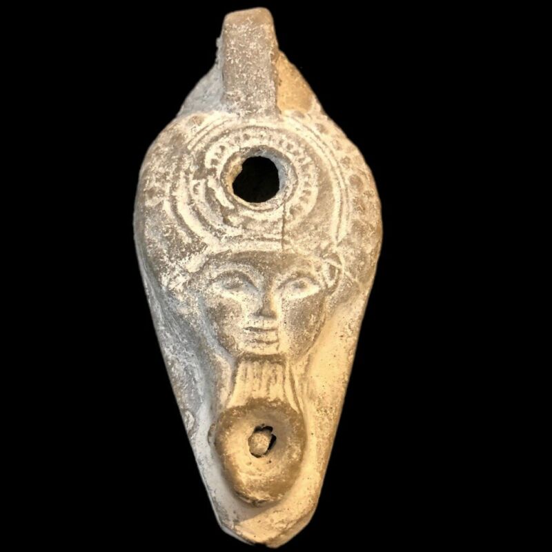 Title (ebay affiliate link): RARE BEAUTIFUL ANCIENT EGYPTIAN OIL LAMP WITH ZOOMORPHIC BUST 300 BC (1)