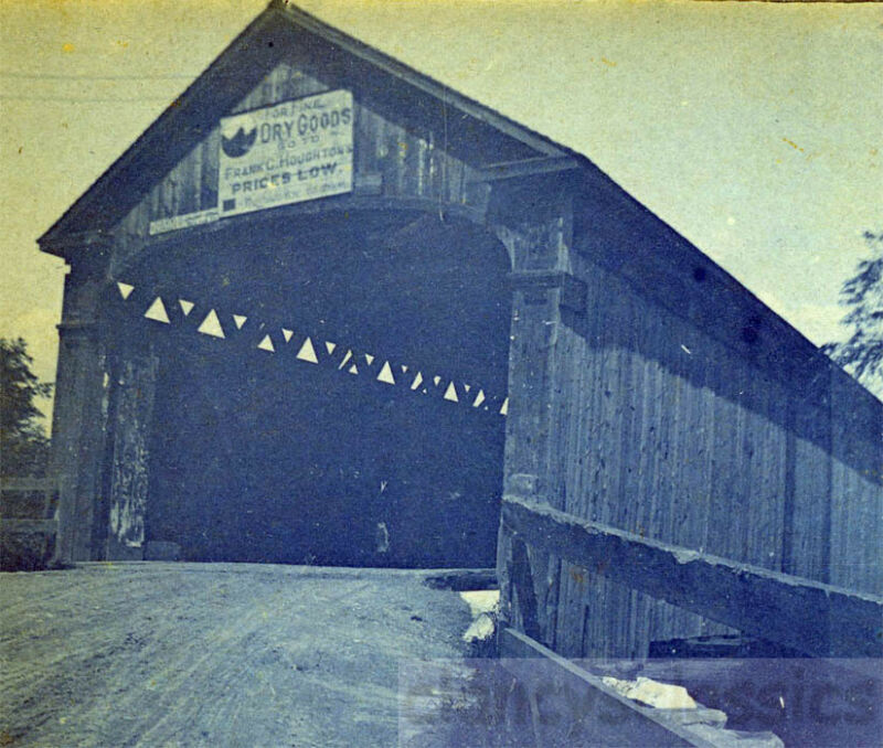 Title (ebay affiliate link): 1900 Cyanotype Rutland Vermont Covered Bridge Dry Goods Sign Frank Houghton