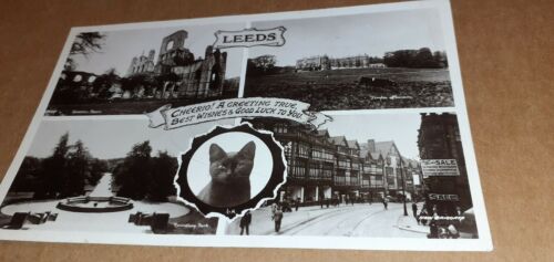 POSTED 1935 R/P(BAMFORTH REAL PHOTO) POSTCARD"CHEERIO(BLACK Cat) LEEDS"MULTIVIEW