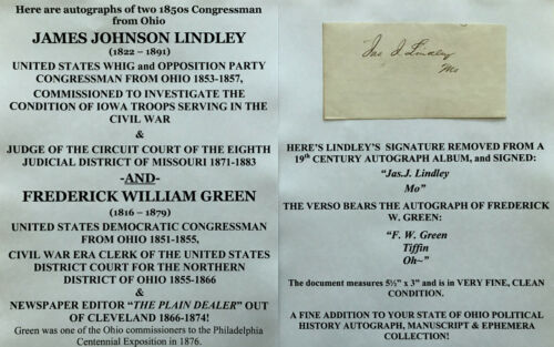 Title (ebay affiliate link): 1850s US WHIG/DEMOCRATIC PARTY CONGRESSMAN OH LINDLEY/GREEN AUTOGRAPH SIGNED VF!